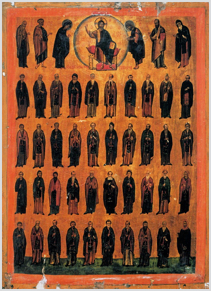 Мина Синайский Исаия Синайский Савва Синайский Моисей Синайский Моисей Синайский Иеремия Синайский Павел Синайский Адам Синайский Сергий Синайский Домн Синайский Прокл Синайский Ипатий Синайский Исаак Синайский Макарий Синайский Марк Синайский Вениамин Синайский Евсевий Синайский Илия Синайский Иосиф Аналитин, Раифский Феодул Синайский Всеволод (в Крещении Гавриил) Новгородский, Псковский Елена Константинопольская, царица Иоанн Лествичник, Синайский Анастасий I Синаит, Антиохийский Анастасий Синайский Феодор Сикеот, Анастасиупольский Варфоломей (Нафанаил) Лука Евангелист, иконописец Климент Епиподий Лионский Виталий Александрийский Платон (Йованович), Банялукский Собор преподобных отец, на Богошественной Горе Синай подвизавшихся Евстафий Малаховский Димитрий Власенков Елисей Акакий Синайский Илия Фесвитянин Григорий Синаит Иисус Навин, праотец Моисей Боговидец Иулиан Персиянин, пустынник Галактион Емесский (Финикийский) Епистимия Емесская (Финикийская) Нил Постник, Синайский, отшельник Иустиниан I Управда, Византийский, император Екатерина Александрийская, дева