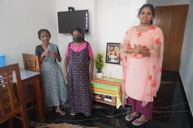 “The calamity has brought a blessing to us. We thank God for it,” 75-year-old widowed Rosily, who has been struggling to take care of her specially-abled unmarried daughter Philomina and her two orphaned granddaughters, told CNA from the new house they were given.