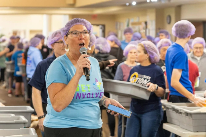 The meal-packing event allows everyone to serve in some way, Kozlowski noted. Seniors might offer funding for the project, while young families pitch in for the physical part of the effort.