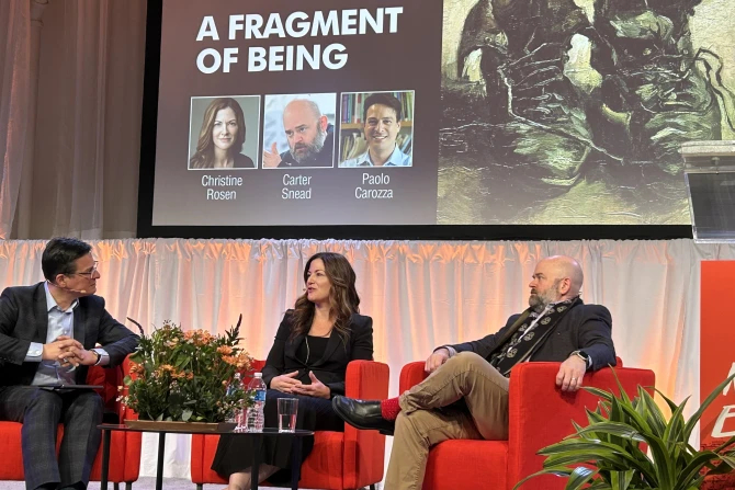 Carozza, serving as moderator, was joined on the panel by Christine Rosen, author of “The Extinction of Experience: Being Human in a Disembodied World,” and Notre Dame law professor and bioethicist O. Carter Snead, author of “What It Means to Be Human: The Case for the Body in Public Bioethics.”