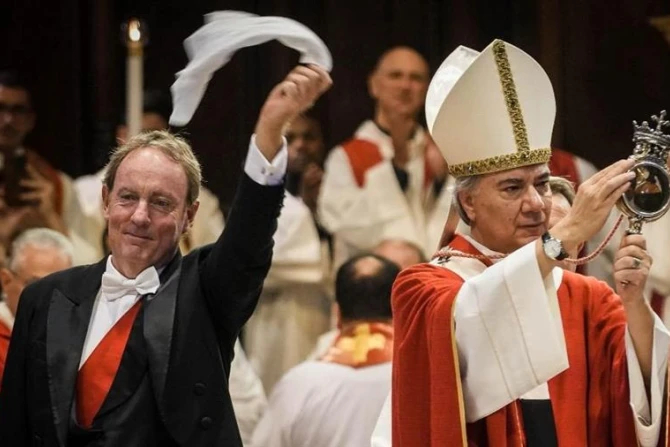 As archbishop of Naples, Battaglia also celebrates the twice annual Mass in the Naples cathedral at which an ampoule containing the relic of the blood of the third-century martyr St. Januarius is examined to confirm if the miracle of liquefaction has taken place.