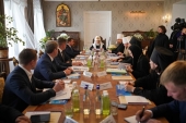 The meeting was attended by representatives of the Russian Orthodox Church: the manager of the Moscow Patriarchate Metropolitan Gregory of Voskresensk; the chairman of the Financial and Economic Department of the Moscow Patriarchate Metropolitan Nikandr of Naro-Fominsk; Vicar of the Solovetsky Monastery Bishop Porfiry of Ozersk; Personal Secretary of His Holiness Patriarch Kirill Bishop Alexis of Ramensk; Head of the Legal Department of the Moscow Patriarchate Higumen Xenia (Chernega).