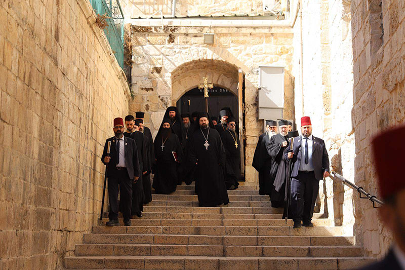 Therefore, our Moderate, accompanied by the reverend and venerable members of our Holy Sepulchre Brotherhood and also the devout children of our Christ-following flock, went to the Most Holy Shrine of the Resurrection and offered thanksgiving to our Holy Triune God, "who has done great wonders" (Psalm 135: 4) to our people.