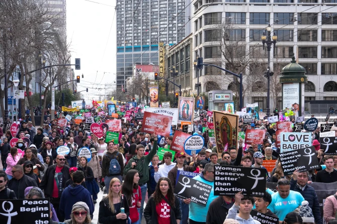 Tens of thousands of pro-life advocates filled Civic Center Plaza and marched more than a mile through the heart of San Francisco on Saturday for the 21st annual Walk for Life West Coast.