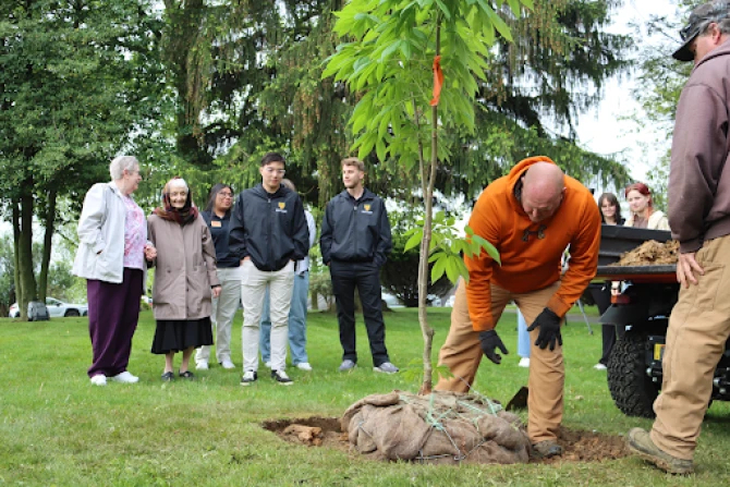 James Paharik, director del centro educativo y profesor de sociología y salud conductual de Seton Hill, dijo a CNA que "significa mucho para nosotros tener este árbol."