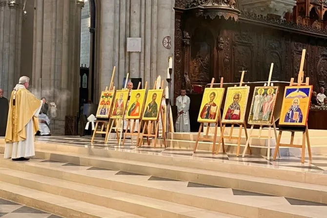 La liturgia de este año se distinguió por la bendición de ocho iconos pintados por artistas franceses y de Oriente Medio que representan a los primeros santos de los primeros siglos del cristianismo.