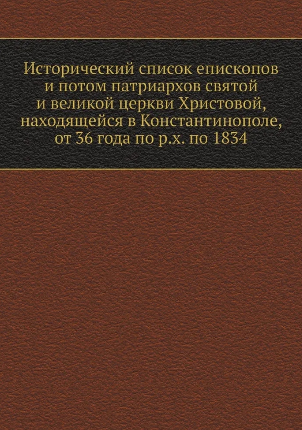 Исторический список епископов и потом патриархов святой и великой церкви Христовой, находящейся в Константинополе, от 36 года по Рождестве Христовом по 1834
