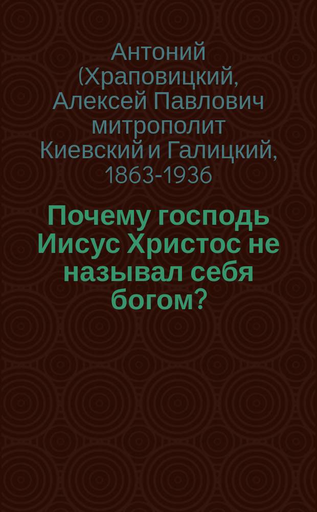Почему Господь Иисус Христос не называл Себя Богом? митр. Антоний (Храповицкий) 0 0 0 137 Жанр Религиоведение Конфессия Восточное христианство Читать Добавить в список для чтения Другие книги A.T. Robertson Word Pictures in the New Testament John Young Christ of History: An Argument Grounded in the Facts of His Life on Earth Thomas Watson Lord's Prayer by Ellen G. White Acts of the Apostles Новости 49 0 1847 Святая гора Афон: монашеская респудика на полуострове Айон-Орос 22.06.2025 43 0 1659 22 июня – память святого праведного Алексия, пресвитера Московского 21.06.2025 49 0 1670 20 июня – память Курской-Коренной иконы Божьей Матери «Знамение» 19.06.2025 10 0 1390 С началом Петрова поста! 15.06.2025
