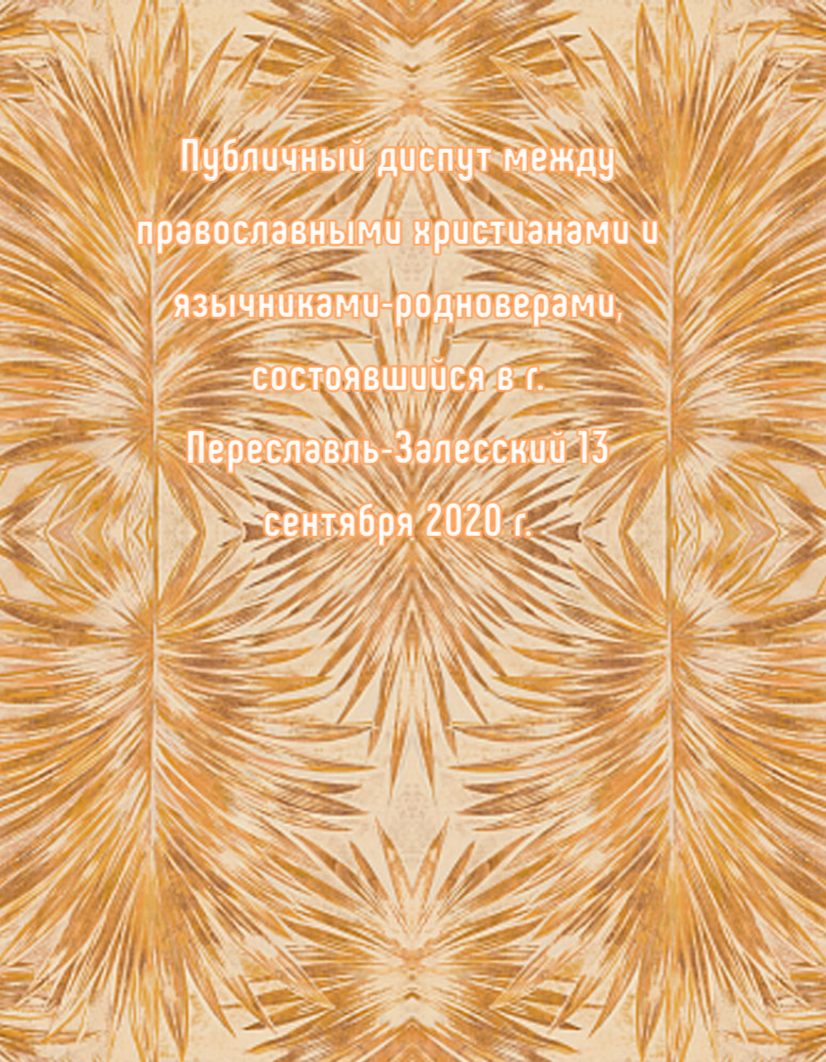 Публичный диспут между православными христианами и язычниками-родноверами, состоявшийся в г. Переславль-Залесский 13 сентября 2020 г.