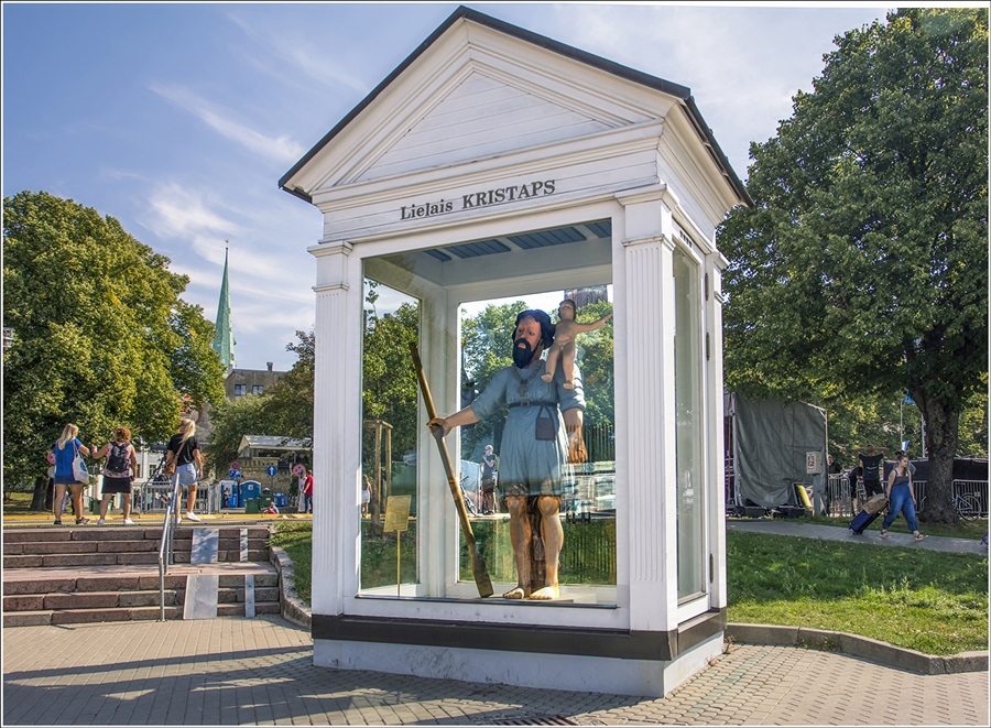 Когда и как в городе появилась деревянная фигура Кристапа, никто не знает. Зато известно, что, установленная рядом с Карловыми воротами сосновая фигура святого в XVIII веке уже считалась очень старой и была весьма почитаема горожанами. А в 1862 году, когда ворот не стало, фигуру перенесли на берег Даугавы и установили неподалеку от того места, где она сливается с другой рекой – Ригой. Чтобы уберечь фигуру чтимого святого от дождя и снега, над ней соорудили деревянный навес.
