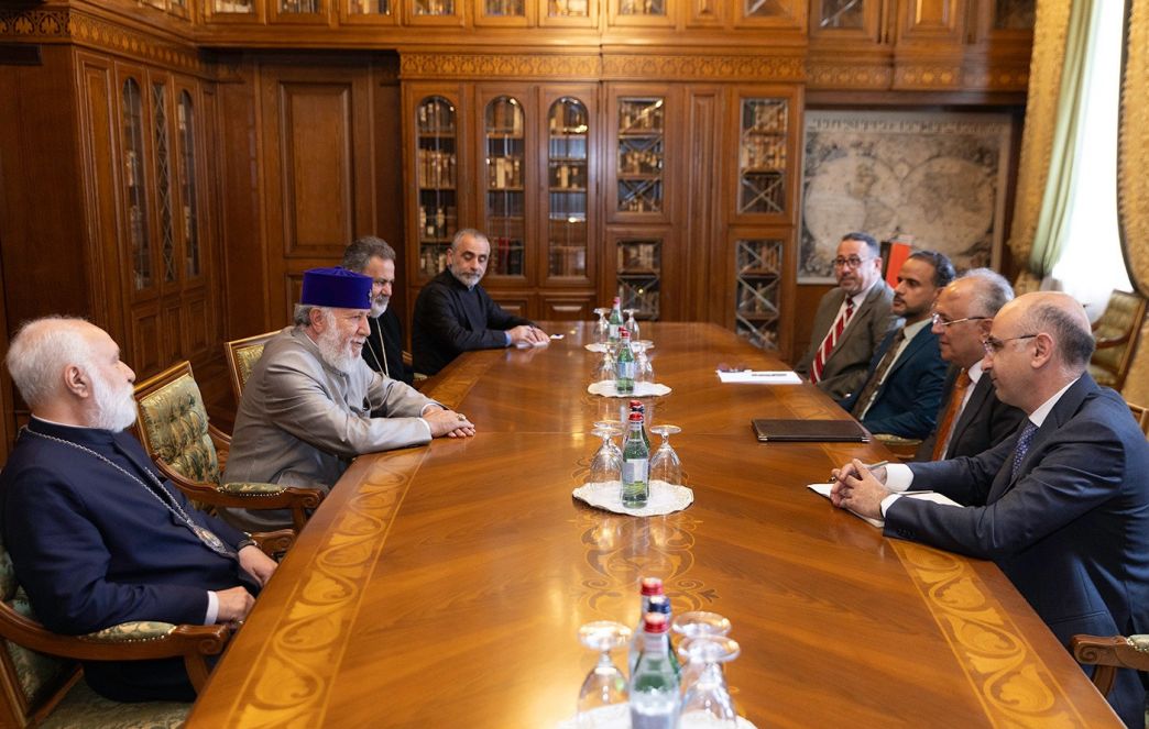На встрече также присутствовал глава Армянской епархии Ирака. Епископ Ошский Гюлгюлян и председатель центрального отдела епархии Тиар Карапет Галустян.