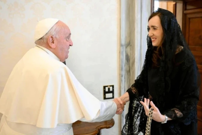 Папа Франциск в понедельник принял вице-президента Аргентины Викторию Вильярруэль в ходе встречи, на которой они обсудили ситуацию в стране и обменялись подарками.