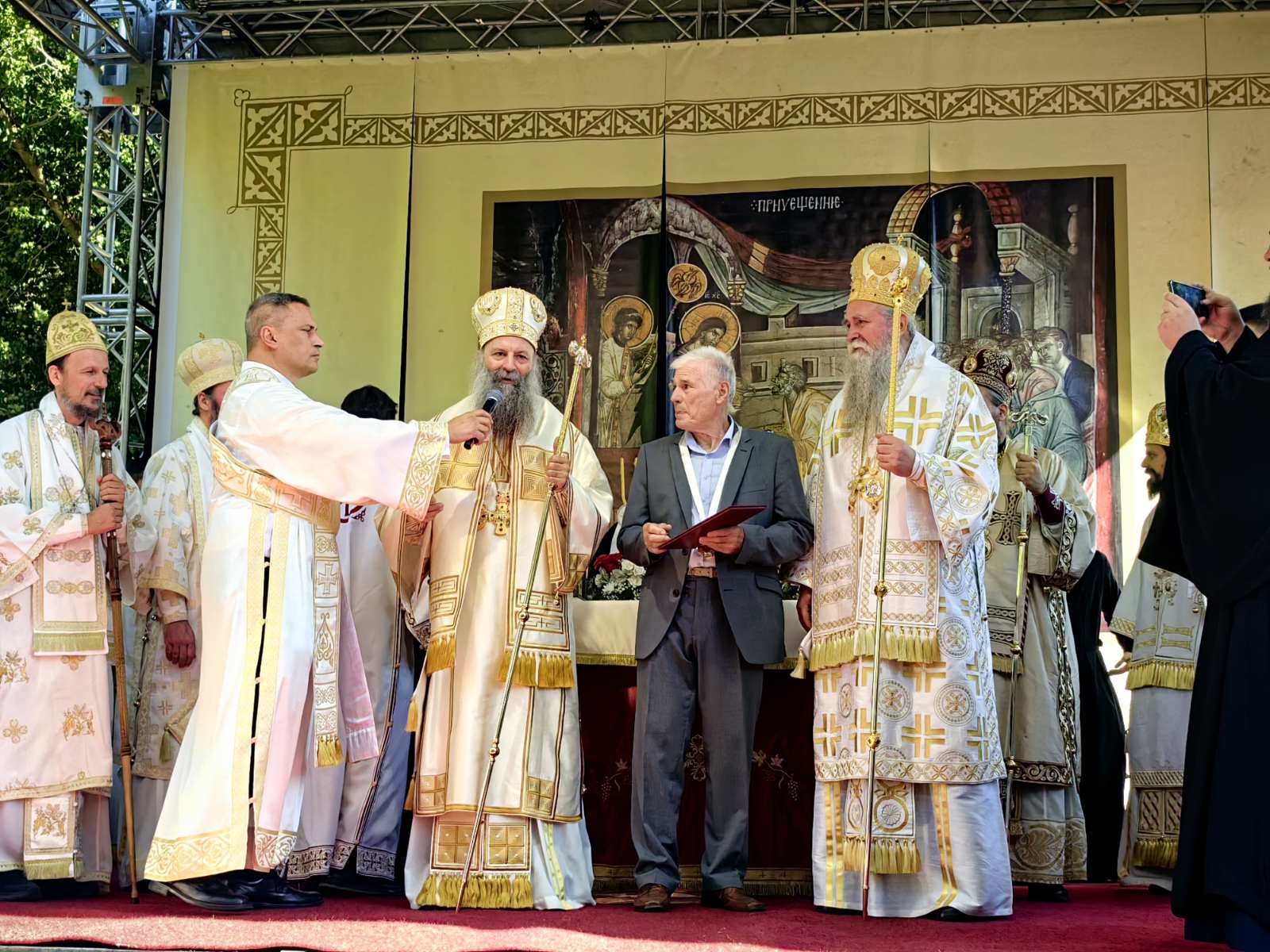 По окончании Святой Литургии митрополит Иоанникий вручил Его Святейшеству патриаршие знаки отличия и икону Пресвятой Богородицы Биельской в дар и молитвенную память. Молитвенное собрание завершилось торжественным вручением высокой церковной награды проф. Доктор Драго Шерович. По этому поводу Патриарх Порфирий сказал: