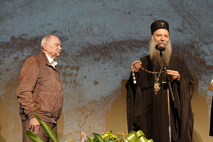 - Кто-то решил, что из-за вашего достоинства и человеческой честности, из-за вашего открытого свидетельства о православно-евангельских ценностях, запретить Вам получать разные «золотые предметы»: пальмы, раковины, медведей, львов... Наша Сербская Православная Церковь, признавая ваше свидетельство подлинного, здорового, нормального, в соответствии с замыслом Божьим человека, который на самом деле является универсальным человеком, решила наградить вас своим высшим признанием — орденом Святого Саввы I степени.