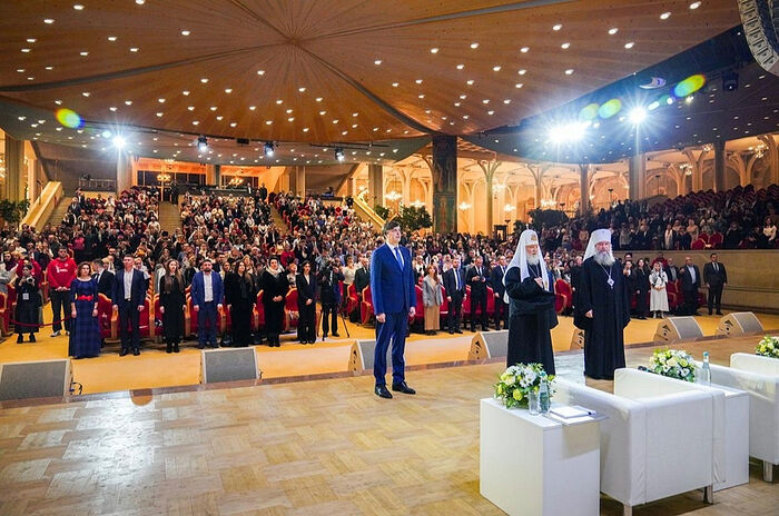 Также выступил министр просвещения РФ С.С. Кравцов. Он выразил признательность за неустанное внимание, которое Русская Православная Церковь уделяет вопросам воспитания, образования, исторического просвещения и защите традиционных ценностей нашей страны.