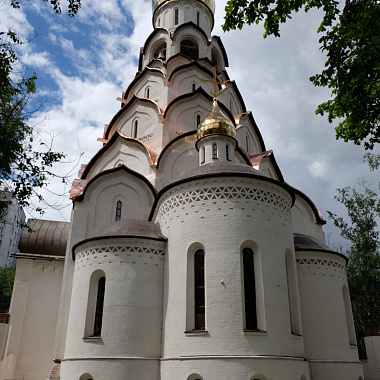 Расположенная рядом со станцией метро «Строгино» белоснежная церковь с кружевами – будто частица Древней Руси среди многоэтажной городской застройки. Несколько ярусов кокошников, над ними – звонница. Форма у храма довольно сложная – чтобы идеально воплотить все идеи, заложенные в проект, почти каждый камень прежде, чем его уложить, обрабатывали вручную. Кровля на храме медная, купола – золоченые. Высота здания – 48,5 метра. «Новый храм получился очень красивый. Он такой воздушный, светлый. Чудо, что в XXI веке в Москве появляются такие», – говорит одна из здешних прихожанок, Ольга Зубарева.