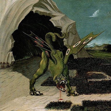 Но есть здесь и артефакт совершенно другого рода. Это огромная кость, судя по всему — реберная, которая хранится в ризнице внутри саркофага из кованного железа и стекла. Кость эта, как уверяет легенда, некогда принадлежала дракону, наводившему ужас на жителей двух соседних селений — Ате и Тиксия — находившихся на месте нынешнего города Атесса. Однажды здешние места посетил, паломничая, Леуччо из Александрии — первый епископ Бриндизи. Святой муж был человеком храбрым и решительным — и, узнав от местных жителей о напасти, взялся им помочь. Легенда расходится в том, кто одолжил святому Леуччо меч, обеспечивающий победу в единоборств — по одной версии, это был Архангел Михаил, по другой — Сам Господь. Так или иначе, вооружившись им, епископ вступил в схватку с чудовищем — и после долгой и упорной борьбы умертвил его. В память о волшебном спасении Ате и Тиксии от чудовища он отдал местным жителям кровь и одну из костей поверженного дракона — последняя до сего дня и хранится в ризнице собора. А сам собор стоит на том самом месте, где было логово зверя, перед которым и происходило единоборство — и посвящён избавителю, Сан-Леуччо.