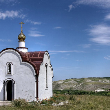 Блаженный старец Пётр, в честь которого и названа часовня, был рожден в селе Белогорье, он подвязался в монастырских пещерах, в 1930-х годах его арестовали и посадили в Острогожскую тюрьму, где он и скончался.