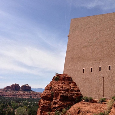 Среди сурового, первозданного ландшафта Аризонского заповедника вырастает из скальной породы футуристическое сооружение, выполненное в стиле минимализма. Это католическая часовня Святого Креста(Chapel of the Holу Cross) , которая является, пожалуй, одним из самых необычных религиозных сооружений в США.