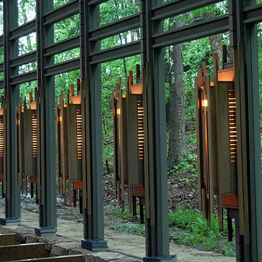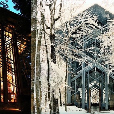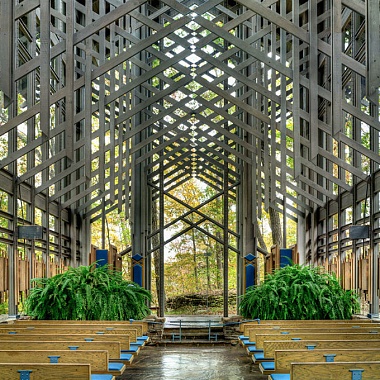 Эта футуристическая лесная часовня выглядит очень стильно и в то же время идеально вписывается в природный ландшафт. Часовня Тернового венца (Thorncrown Chapel) расположена в горах Озарк (Ozark Mountains), в местечка Юрика-Спрингс (Eureca-Springs, Arkansas) – и у многих вызывает ассоциации с постройками сказочных эльфов.