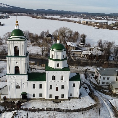 Именно хозяин завода — этого и многих других на Урале — Никита Никитович Демидов был инициатором строительства храма, которое с соизволения Екатеринбургского Духовного правления началось в 1760 году. Деньги на строительство белокаменного дома молитвы местные жители собирали всем миром. В 1764 году новую двухэтажную церковь в стиле барокко освятили: нижний, отапливаемый храм — во имя пророка и Предтечи Господня Иоанна Крестителя, верхний, неотапливаемый — в честь праздника Сошествия Святого Духа на апостолов.