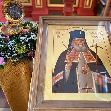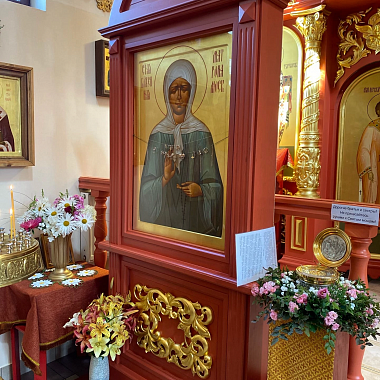 Святыни храма вмч. Пантелеимона: икона св. вмч. Пантелеимона с частицами мощей святого; иконы Успения Пресвятой Богородицы и Страшного суда (XVIII в.), ковчег с частицей мощей блж. Матроны Московской, святителя Луки Войно-Ясенецкого.