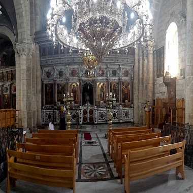В году 1837-м году храм почти полностью разрушен в результате сильного землетрясения. В 1870-м участок, на котором он стоит, становится предметом спора между католиками-францисканцами и православным Иерусалимским патриархатом — и в итоге достаётся последнему. Греки восстанавливают храм и встраивают в его конструкцию то немногое, что осталось от византийской базилики — не считая той части, которая стала мечетью и сегодня вплотную примыкает к церкви, стоя на её историческом фундаменте.