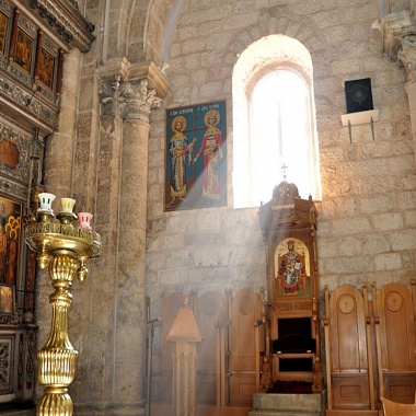 Рядом с церковью святого Георгия, выстроенной из серого камня, располагается совсем небольшое, квадратное в плане здание, увенчанное собственным куполом. Изначально оно служило для крещения новоначальных членов местной христианской общины.