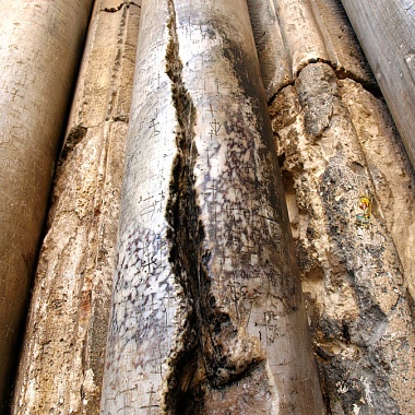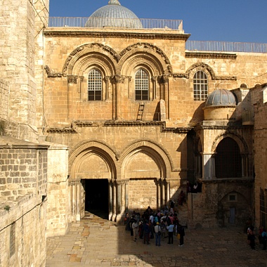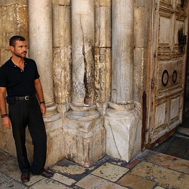 Перед входом в Храм Гроба Господня, слева от главных ворот, стоят три древние мраморные колонны коринфского стиля. В средней колонне имеется оплавленный разрыв от святого Огня. Здесь паломники оставляют записки.