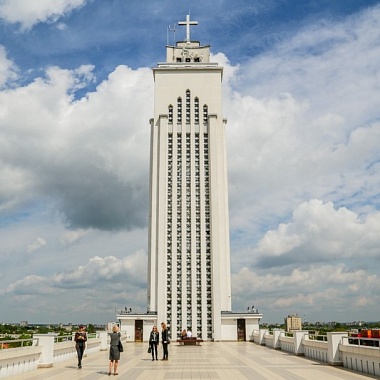 За подъем на смотровую площадку и возможность полюбоваться городом с высоты птичьего полёта придется пусть немного, но заплатить. Интересно, что подняться сюда по лестнице обойдётся чуть дешевле, чем на лифте. С площадки прекрасно видны храмы Каунаса: католическая церковь Михаила Архангела, иезуитский костел святого Франциска Ксаверия, костёл Витовта Великого и кафедральный собор святых Петра и Павла.