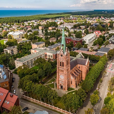 Если преодолеть сто ступеней лестницы, ведущей наверх, со смотровой площадки костёла можно, как на ладони, увидеть почти весь этот литовский курорт. Костёл Вознесения Пресвятой Девы Марии — самое высокое здание в Паланге. И, пожалуй, самое красивое здесь.