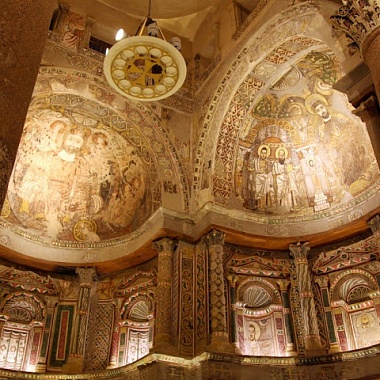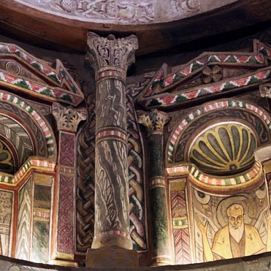 Главная церковь Красного монастыря изнутри украшена росписью, старейшие части которой относятся к Х веку; ярусы ниш церкви выполнены с большим изяществом. Многие из фресок не так давно подновили работавшие здесь реставраторы из Италии. А в глубине монастырского двора расположилась небольшая Красная церковь с замысловатыми крючками-запорами на дверях. Интересно отметить, что по местной традиции в неё не пускают женщин.