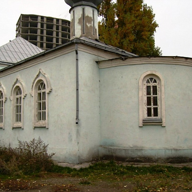"Кирпичная церковь, возведенная на правобережной части города в середине восемнадцатого века. Построена в стиле типичного классицизма тех времён - имеет двусветный одноглавый четверик с трапезной. В 1676 году алтарь был достроен алтарь во имя иконы Богоматери “Всех скорбящих радости”, отдельно стоящая четырехъярусная звонница сооружена в первом десятилетии девятнадцатого века. Из-за отношения к религии в СССР, закрыта и снесена при советской власти - в 50-ых годах двадцатого века, от церкви осталась только колокольня, которую убрали через двадцать лет. Таким образом, еще тридцать лет назад, спускаясь вниз по улице Чернышевского, перед нами бы стояла одинокая звонница - остатки снесенной крестильной церкви Иоанна Богослова. С точки зрения архитектуры, церковь всё время не привлекала какое-то особое внимание исследователей и краеведов. Это и составляет основную сложность для описания архитектурной части церкви - не сохранилось ни единого чертежа, лишь довоенные фотографии. Здание было небольшим по площади, не больше 350 квадратных метров с низкой храмовой частью, фасады по бокам украшала колоннада с собственным перекрытием, образованным антаблементом, увенчанным аттикой. Церковь стояла на пересечении четырех улиц — одна из которых носила имя этой церкви - Богословская, ныне Чернышевского.