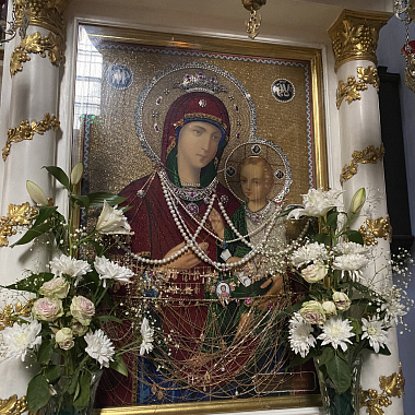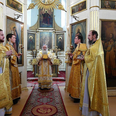 Престолы храма: в честь Животворящего Креста Господня, Вознесения Господня, прп. Антония Римлянина.