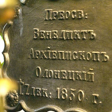 Под алтарем Крестовоздвиженского собора похоронен архиепископ Петрозаводский и Олонецкий Венедикт, который благословил возведение храма, но почил до завершения строительства (7 декабря 1850 г.). В храме похоронен 29 ноября (ст. ст.) 1865 г. тайный советник Константин Иванович Арсеньев – один из воспитателей (с 1828 по 1837 гг.) наследника престола, будущего императора Александра II.