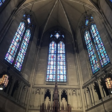 Внешний вид и интерьер Мемориальной часовни Хайнца выдержаны в стилистике и пропорциях неоготического архитектурного стиля. Более же всего вошедшего внутрь поражают витражи в высоких узких окнах поперечного нефа. Всего их двадцать три, высота каждого — 22 метра. На создание этих, одних из самых высоких в мире, витражей у их автора, Чарльза Конника, ушло 250 тысяч фрагментов стекла разного цвета. На витражах — животные, растения, люди; одних только человеческих фигур на них почти четыре сотни! При этом количество изображённых здесь мужчин и женщин — абсолютно равное. Согласитесь, такой подход совсем не типичен для тридцатых годов прошлого века!