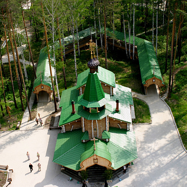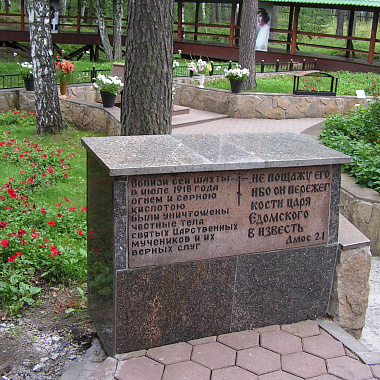 У спуска в шахту стоит памятный камень с цитатой из книги пророка Амоса: «Не пощажу его, ибо он пережег кости царя Едомского в известь» (Амос 2;1). По обе стороны от шахты построены монастырские храмы — во имя святых Царственных Страстотерпцев, праведного Иова Многострадального, святителя Николая Чудотворца, преподобного Серафима Саровского, преподобного Сергия Радонежского, а также честь икон Божией Матери «Иверская» и «Державная». Храмов семь — по числу убиенных членов императорской семьи. Молятся в них обо всех казнённых и умученных в годы безбожной власти.
