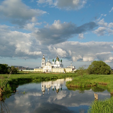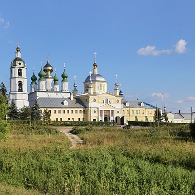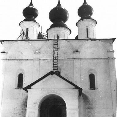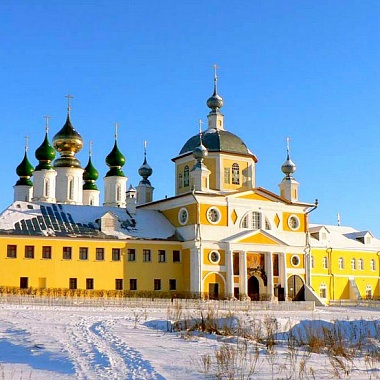В 1649 году в обители вспыхнул пожар: как свидетельствует летопись, монастырь «изволением Божиим от молнии до основания выгорел». Однако фактически сразу же святая обитель начинает отстраиваться заново — уже не из дерева, а в камне. Правда, теперь на другом месте, несколько ближе к устью реки Молохты. Уже в 1651 году было завершено строительство главной монастырской церкви — пятиглавого Никольского собора. Особый отопляемый храм строится в честь и славу Казанской иконы Божией Матери, одного из самых почитаемых в России образов Царицы Небесной. А вот Преображенская Церковь над Святыми воротами строилась намного дольше — и свой окончательный вид приобрела только после завершающей реконструкции, в 1813 году. Архитектурный ансамбль монашеской обители завершала пятиярусная колокольня в виде свечи, складывавшаяся с тремя монастырскими храмами единый образ креста.