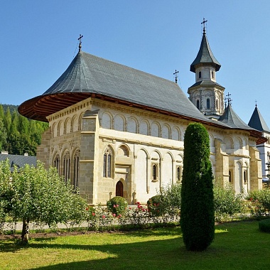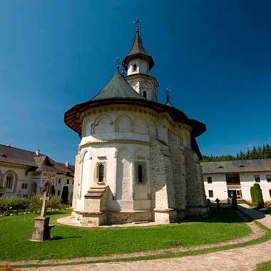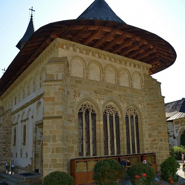 Соборная Успенская церковь — сердце святой обители — построена в форме трилистника. Она стала своего рода некрополем румынских господарей: здесь захоронено 28 правителей, большинство из которых относится к династии Мушатинов. Захоронены здесь и другие люди, сыгравшие в истории Румынии важную роль.