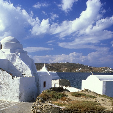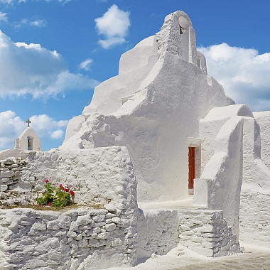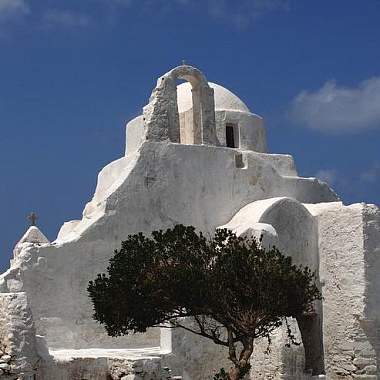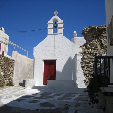 Сколько всего храмов на греческом острове Миконос, точно не знает никто. Местные говорят, что их столько же, сколько дней в году — однако попытки сосчитать неизменно приводили любопытствующих к большему числу. При этом не подлежит сомнению, что самая известная и необычная среди них — церковь Панагия Парапортиани, стоящая посреди мыса Кастро, между Старым портом и улицей Агиос Анаргион.