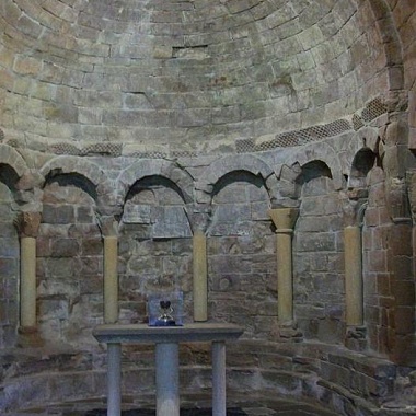 Апсида Верхней церкви монастыря целиком вырублена в скальной породе. В ней имеется три алтаря, устроенных во имя Иоанна Предтечи, святого Михаила и святого Климента. Верхняя церковь была возведена в XI веке над нижней — старой мосарабской капеллой (мосарабами называли христиан, живших на оккупированных мусульманами территориях).