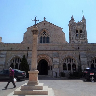 Собор святого Георгия в классическом английском архитектурном стиле был построен на границе Старого Города Иерусалима в самом конце XIX века. Несмотря на то, что большинство англиканских церквей того времени были довольно компактными, этот собор представляет собой обширный храмовый комплекс, который включает собственно здание церкви и пятиэтажную башню со звонницей.
