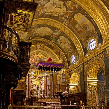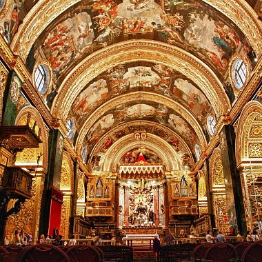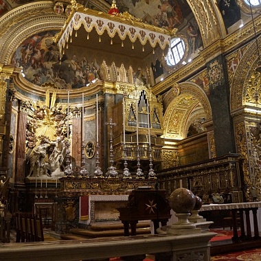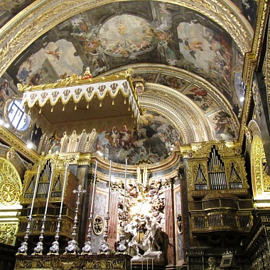 Зато внутри главный храм Мальты блистает невиданной роскоши убранством. На протяжение тнескольких столетий он считался одной из самых богатых католических церквей. Великие магистры, один за другим, умножали богатство собора и делали его внутреннее убранство всё более великолепным. Среди мальтийский рыцарей существовало негласное правило, по которому каждая ступень карьерного роста, каждое важное событие в жизни вообще требовало от человека внесения личного вклада в казну собора — в виде ценного дара или солидной денежной суммы.