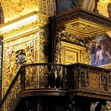 Как то и подобает рыцарям-монахам, мальтийцы снабдили свой главный собор аскетичным, как у военного форта, фасадом. Почти единственным его украшением стал балкон над входом, с которого Великий магистр ордена обращался к пастве в дни церковных праздников и некоторых особых случаях (которые, учитывая воинственность мальтийцев и расположение Мальты на пересечении чуть ли не всех морских путей в Средиземноморье, были не такими уж редкими). С этого же балкона герольды извещали народ об избрании нового Великого магистра ордена.