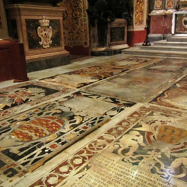 В полу и стенах собора находится множество захоронений рыцарей ордена — их около четырехсот, и все они укрыты искусно украшенными мраморными плитами. Здесь покоятся почти все Великие магистры ордена святого Иоанна, начиная с Ла Валетты — основателя города Валетта. Не удостоился чести быть погребенным в соборе лишь Фердинанд фон Гомпеш — магистр, сдавший Мальту французам во время наполеоновских войн.