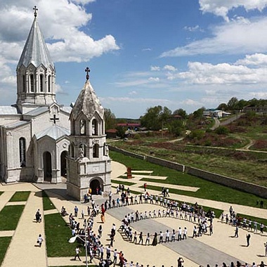 Город Шуши справедливо считают культурной столицей Арцаха (как называют армяне территорию непризнанной Нагорно-Карабахской Республики). В самом центре этого города, построенного на вершине плато, расположен собор Сурб Аменапркич Казанчецоц, освященный в честь и славу Самого Спасителя — Господа Иисуса Христа. Этот храм, доминируя над всей обширной долиной реки Каркар, напоминает Эчмиадзинский кафедральный собор в Армении — и, вместе с тем, имеет неповторимые, присущие лишь ему одному черты.