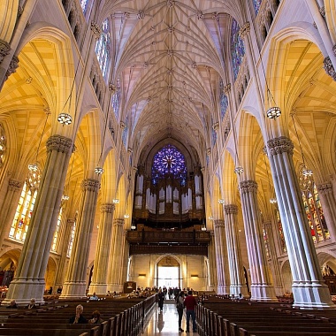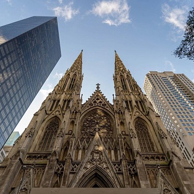 Католический собор святого Патрика в Нью-Йорке — несомненно, самый грандиозный католический храм в крупнейшем мегаполисе Соединённых Штатов Америки. И самый крупный в США, построенный в неоготическом стиле. Его размер таков, что шпили собора ничуть не теряются на фоне небоскребов острова Манхэттен; одновременно для молитвы здесь могут собраться до 2200 человек.