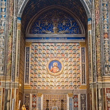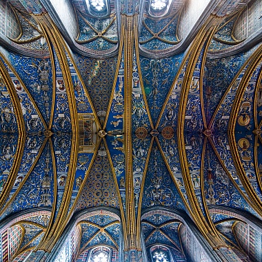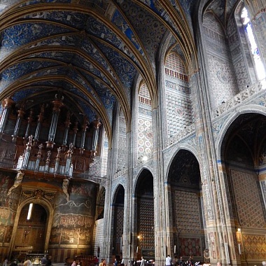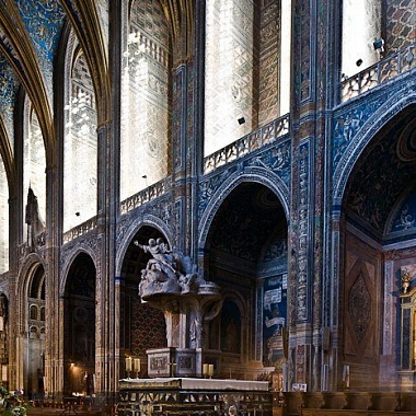 В начале XVI века своды собора были расписаны в стиле монументальной живописи так, чтобы поднимая глаза во время молитвы, верующий был потрясён их великолепием. Общая площадь росписей кафедральном соборе Альби составляет 18 500 квадратных метров — это крупнейший во Франции памятник живописи эпохи Ренессанса. Кстати, неф этого собора — тоже своего рода рекордсмен: он самый широкий во Франции (18 метров).