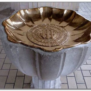 Об авторе проекта грандиозного копенгагенского храма Педере Клинте напоминает разработанная им купель. Она высечена из известняка в античном стиле, а её крестильная чаша из латуни украшена цитатами из Святого Писания о сути и смысле крещения во имя Господа Иисуса Христа.