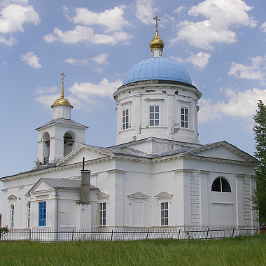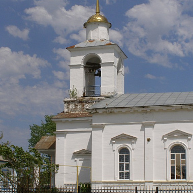 Начавший строиться 28.06.1812г. кирпичный храм стилистики ампир имел 2 придела: правый в честь св. Иоанна Богослова, а левый - в честь св. Великомученицы Варвары. Иоанн Богослов - один из самых близких последователей Христа, один из 12 Апостолов, с именем которого связано написание целой серии канонических текстов. Святая мученица Варвара, рожденная в семье язычников и горячо принявшая христианскую веру, почитается православными как сильная защитница от насильственной и внезапной гибели.